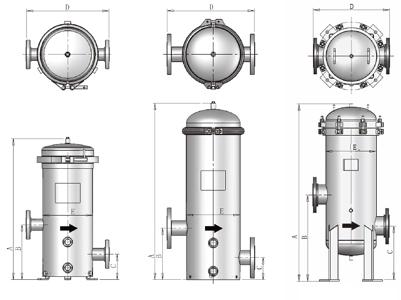 流量在3-500m3/h,适用于纯水、超纯水系统、糖浆、饮料、油脂、酒等之过滤.壳体适用于40″及以下长度的双开口或单开口滤芯设计压力:1.5Mpa,设计温度:150度。