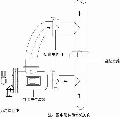 (6)安装时应考虑便于检修,自清洗过滤器前后应安装关断阀门,且应安装旁通管道。
