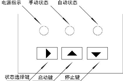 箱操作界面如下图,系统启动时默认处于自动控制状态,自动状态指示灯亮。如需手动即时工作时,请按一下状态选择键,当自动状态指示灯暗、手动状态指示灯亮时,系统处于手动工作状态,此时, 按启动键可启动系统清洗和排污,如需停止,则按停止键,若需回到自动控制状态,则按一下状态选择键,当自动状态指示灯亮、手动状态指示灯暗时,系统处于自动工作状态。