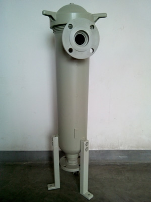 塑料过滤器原理:加压液体过滤器。被过滤的液体从壳体上部的配管流入,然后从过滤袋的内侧流向外侧,固形物被截流。壳体为聚丙烯制,耐压0.6Mpa,耐热90℃,耐用性出众。另外,不需工具就可以更换过滤袋,过滤器操作简便。过滤袋为聚丙烯制,耐腐蚀性强,备有0.5~200微米的多种规格,可对应各种用途。与滤芯过滤器相比,废弃物少,有益于环境。