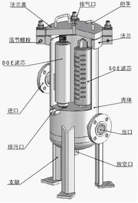 3 、不锈钢筒式过滤器,它内部装有不同孔径的滤芯。要达到精滤的目的,前期必须用预过滤设备(生啤用硅藻土,纸板过滤机。药厂用板框、熔喷、绕线式),再用微孔除菌过滤芯,这样就能达到精滤的目的。